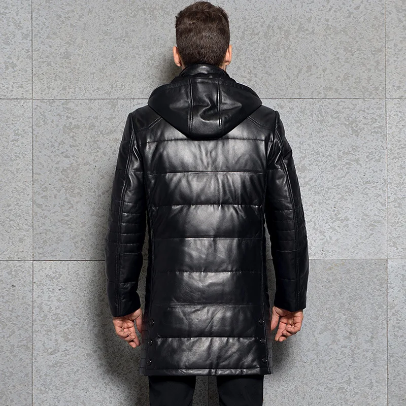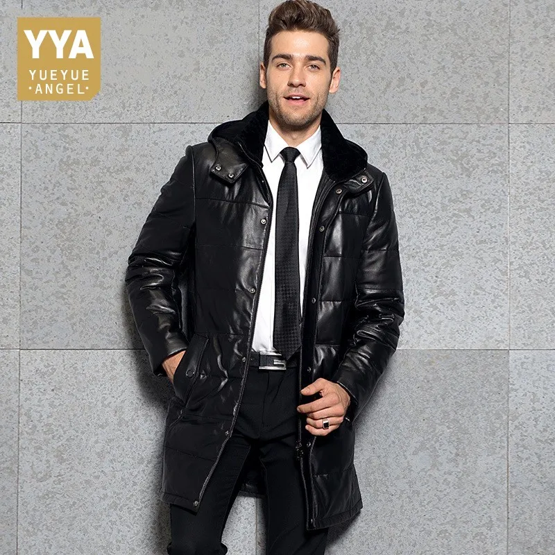 Goede Koop Business Man Winter Uitloper Lange Donsjack Parka Hooded Windbreaker Lederen Overjassen Heren Kantoor Werk Trenchcoats Goedkoop