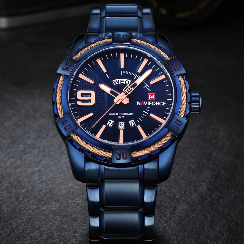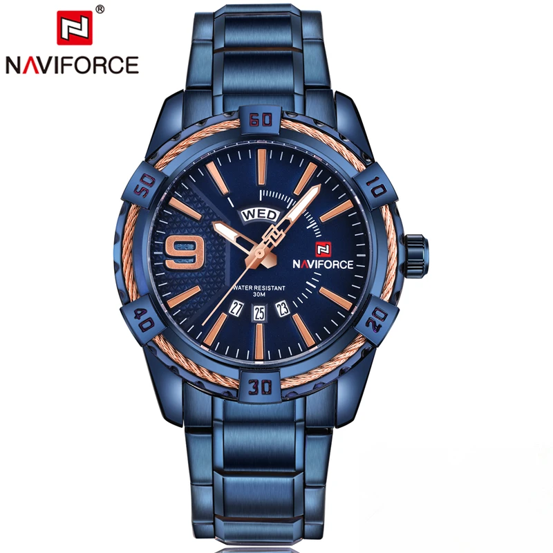 Beste Kopen NAVIFORCE Mode Casual Merk Waterdichte Quartz Horloge Mannen Militaire Rvs Sport Horloges Man Klok Relogio Masculino Goedkoop.