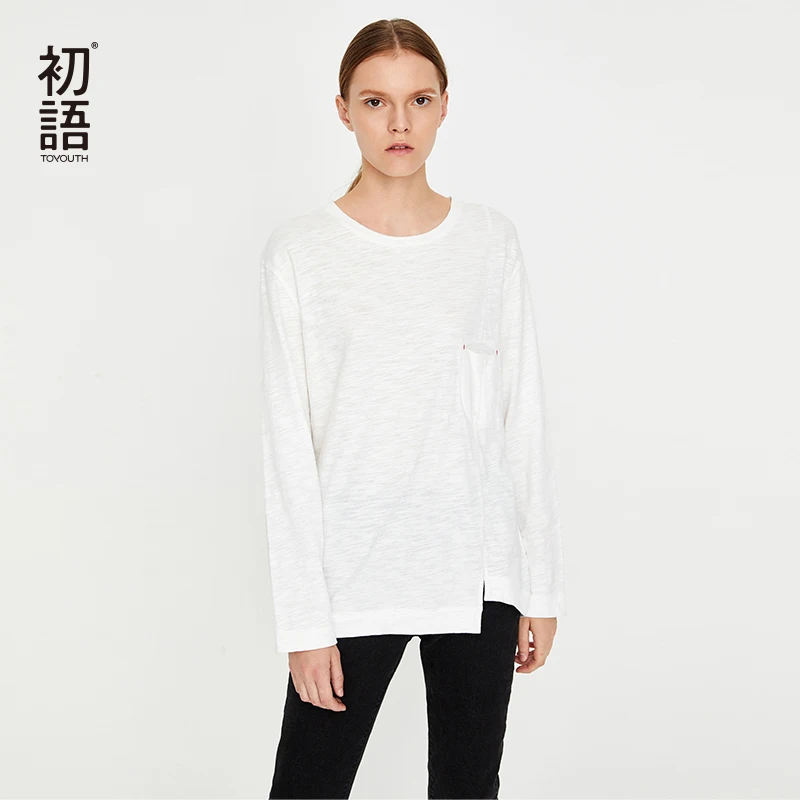 Goede Kopen Toyouth Nieuwe Witte Losse Lange Mouw T Shirts Voor Vrouwen Koreaanse Basic Alle Match Tees O hals Casual Tee Haut Femme Camiseta mujer Goedkoop.