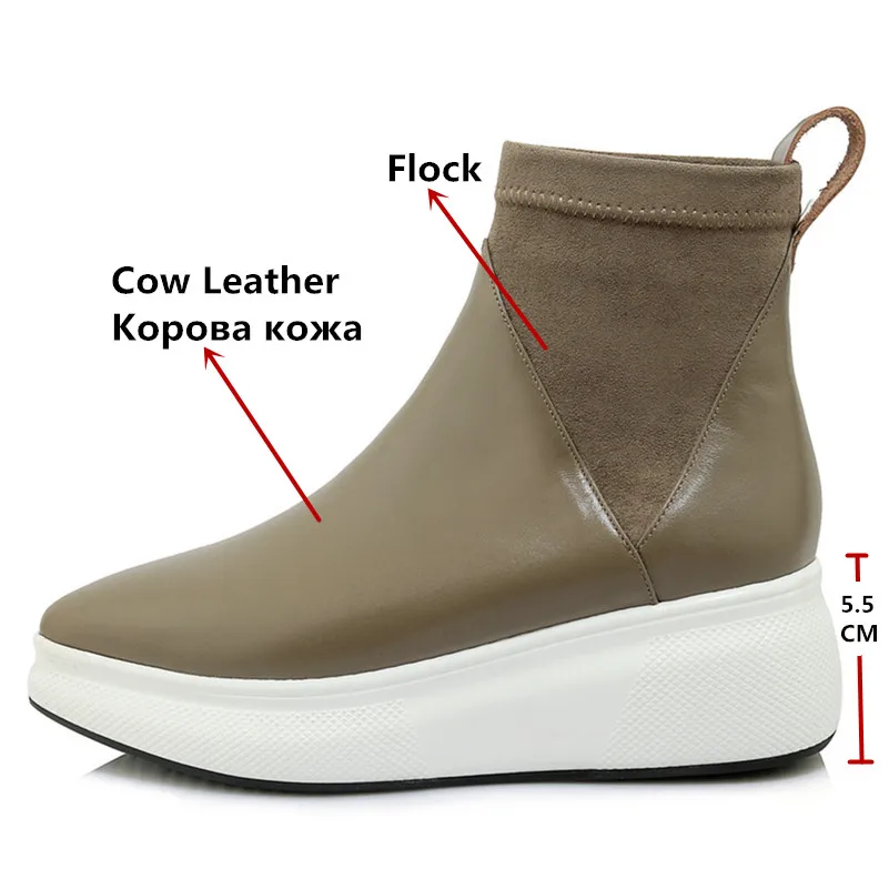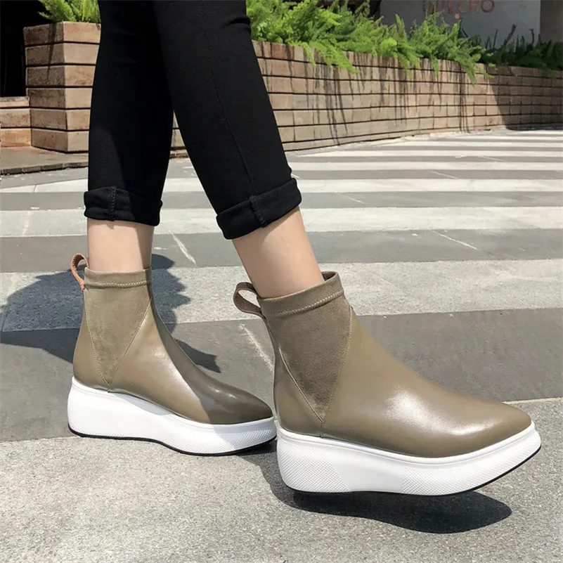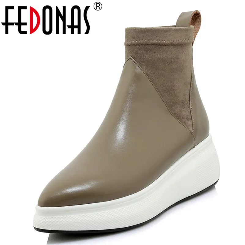 Beste Kopen FEDONAS Nieuwe Retro Vrouwen Echt Lederen Enkellaarsjes Platforms Comfort Casual Sokken Laarzen Vrouwelijke 2019 Schoenen Vrouw Kantoor Pompen Goedkoop