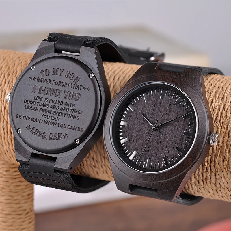 Kopen Goedkoop Gegraveerd Hout Horloges voor Mannen Gepersonaliseerde Familie Anniversary Gift voor Zoon Afstuderen Gift Prijs