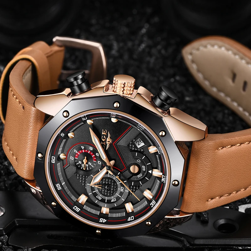 Beste Koop Relogio Masculino LUIK Heren Horloges Top Brand Luxe Lederen Quartz Horloge Gouden Mannen Mode Militaire Waterdichte Sport Horloge Goedkoop.