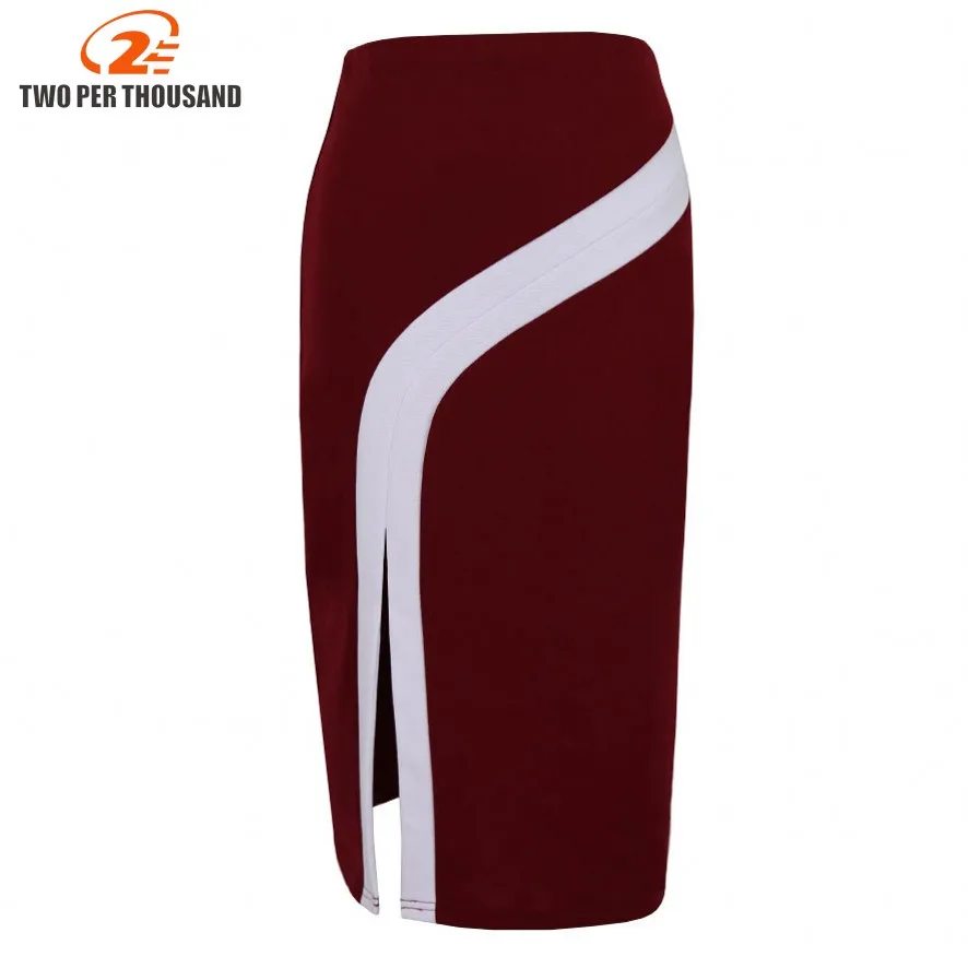 Kopen Goedkoop S 4XL Plus Size Vintage Dames Potlood Midi Rokken Vrouwen Hoge Taille Stretch Casual Wijn Rood Zwart Kantoor Werkkleding Saia rok Prijs