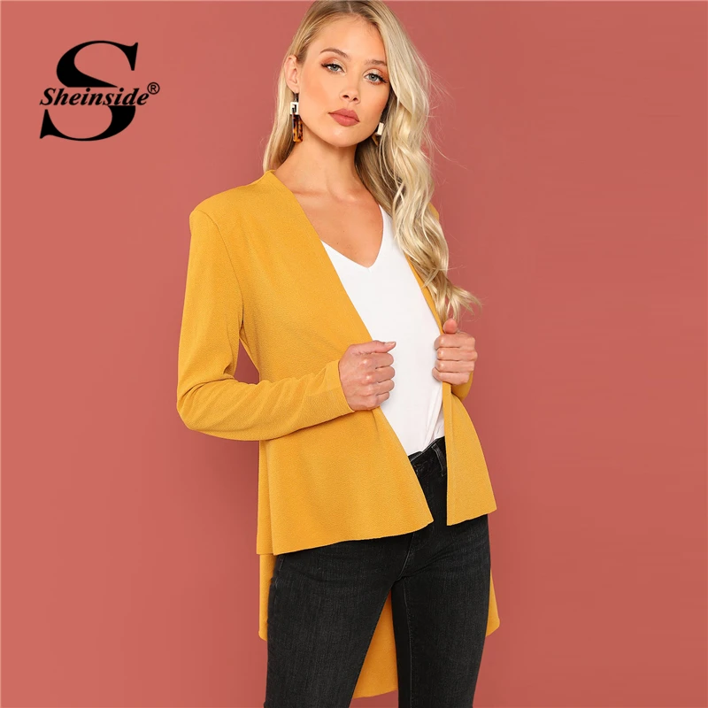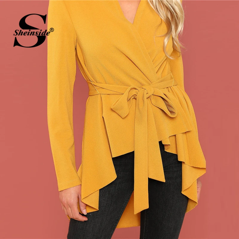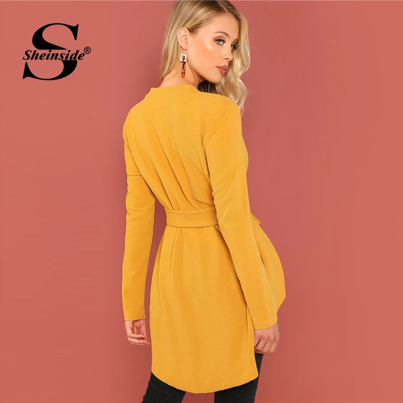 Beste Koop Sheinside Gember Asymmetrische Zoom Belted Coat Vrouwen Plain Lange Mouwen Wrap Bovenkleding Office Dames Werkkleding Elegante Herfst Jassen Goedkoop