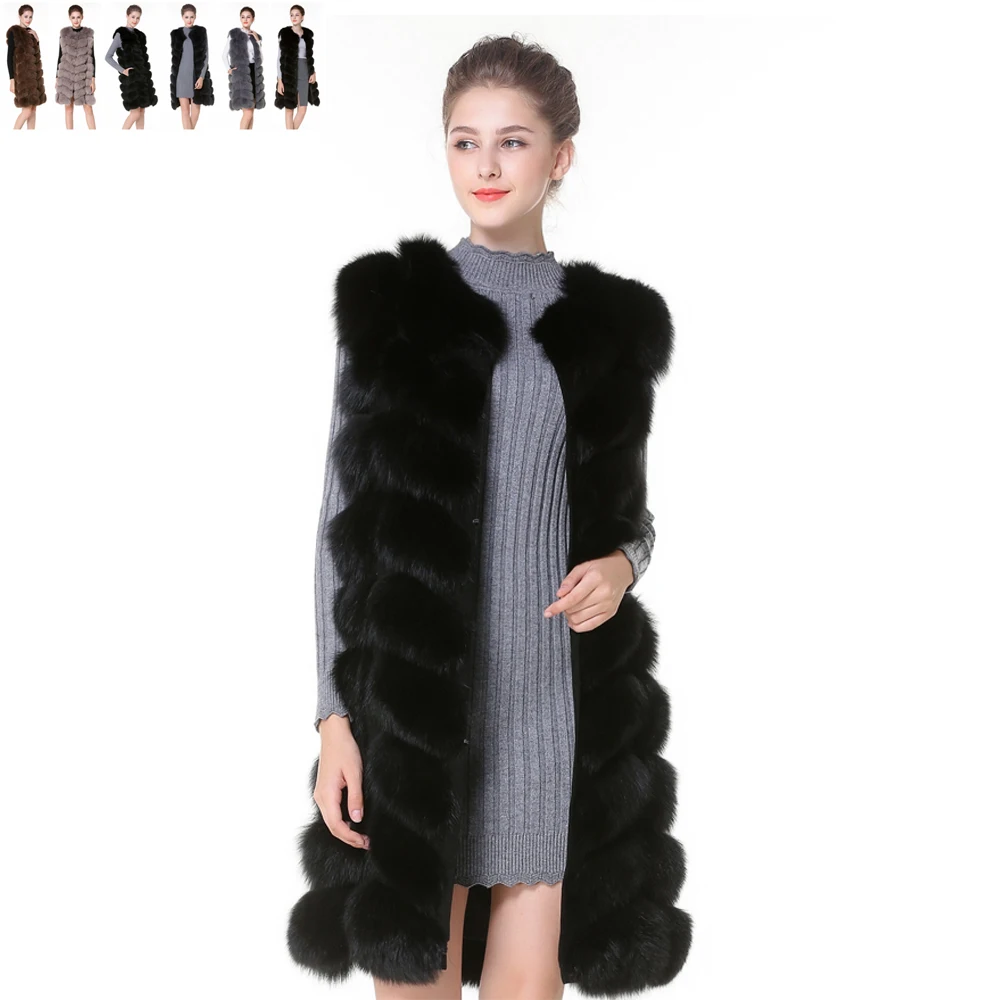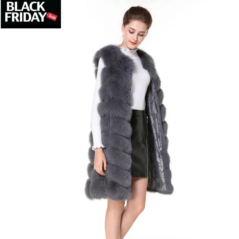 Goede Koop Echt Bont Vest en Jassen Vos bontjassen vrouwen Natural Fox Fur Vest 90 cm Womens Echt Vossenbont Vest lange Jas Schip door DHL 5 dagen Goedkoop