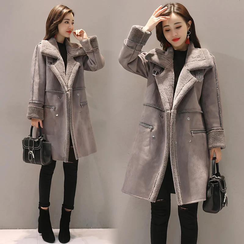 Beste Kopen NIEUWE 2017 Winter Lamswol Suede Bind Coat Warm Lange Mouwen Jas Vrouwen herfst vrouwelijke Lange Overjas Goedkoop.