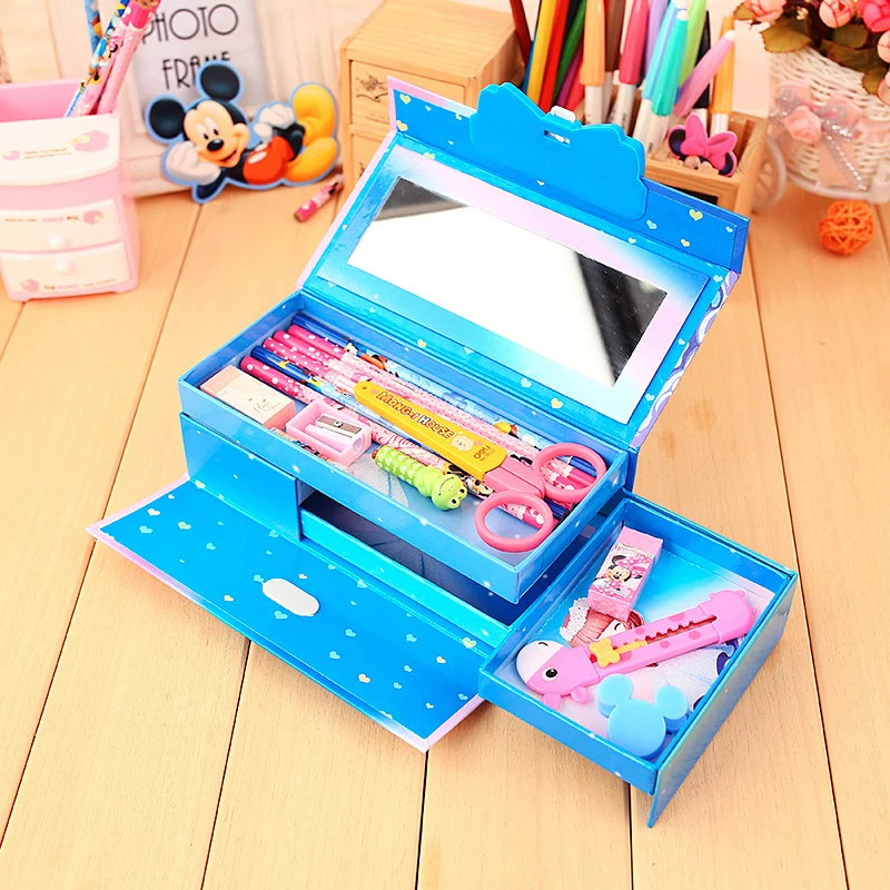 Beste Kopen Kinderen leuke cartoon drie sluizen briefpapier doos eenvoudige multifunctionele potlood doos van mannelijke en vrouwelijke studenten Goedkoop.