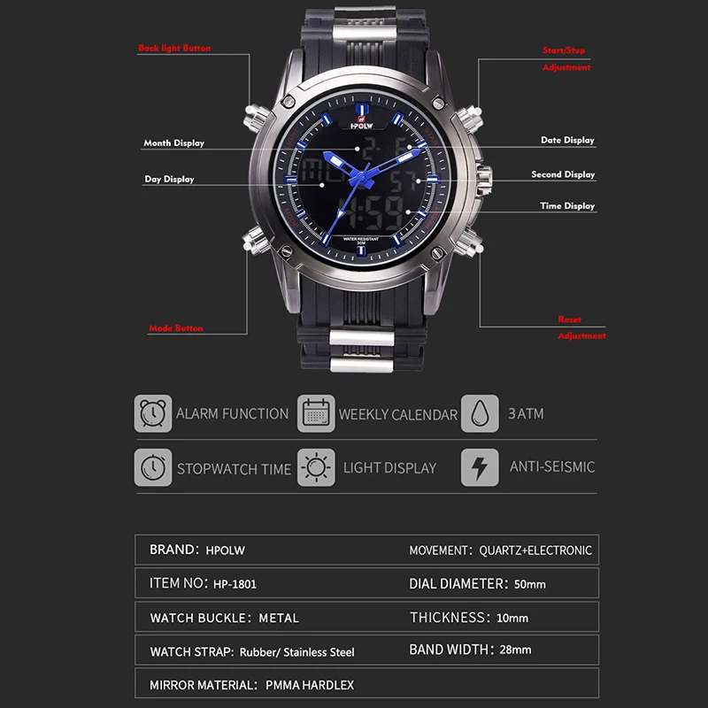 Beste Kopen HPOLW Nieuwe Mannen Sport Horloges Luxe Mens Militaire Leger Horloge Digitale LED Elektronische Mannelijke Horloges Relogio Masculino Goedkoop