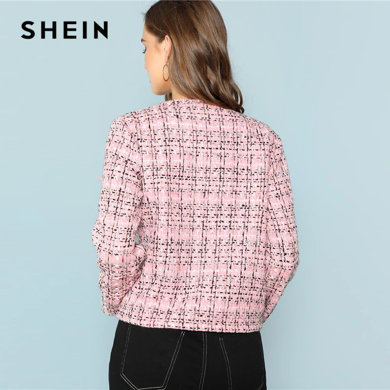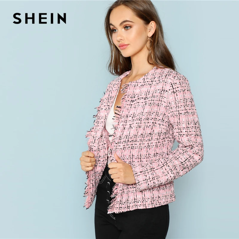 Goede Kopen SHEIN Multicolor Elegante Kantoor Dame Gerafeld Rand Plaid Tweed Blazer 2018 Nieuwe Mode Herfst Highstreet Vrouwen Uitloper Goedkoop.