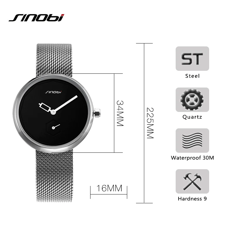 Beste Kopen SINOBI Vrouwen Horloges Sliver Top Brand Fashion Creative Dial Dames Quartz Klok Horloge Vrouwen Armband Horloge Reloj Mujer Mesh Uur Goedkoop