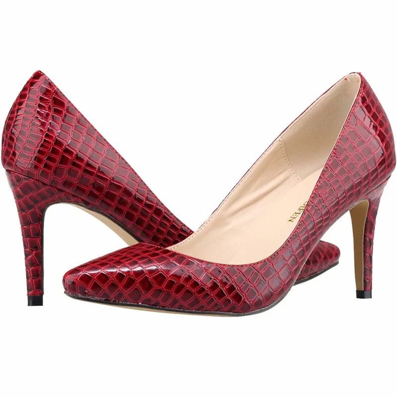 Beste Koop Vrouwen Faux Crocodile Rode Onderkant Schoenen Kantoor Dames Partij Hoge Hakken Schoenen Puntschoen Vrouwen Pompen Sapatos Femininos Salto 952 Goedkoop.