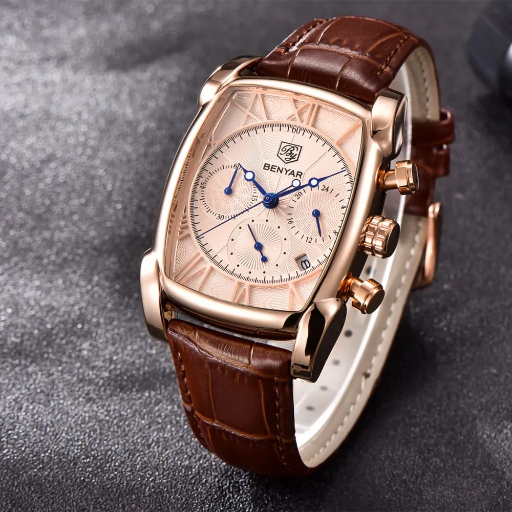 Kopen Goedkoop BENYAR Luxe Merk Horloges Mannen Militaire Sport Lederen Quartz Horloge Chronograaf Waterdicht Relogio Masculino erkek kol saati Online.
