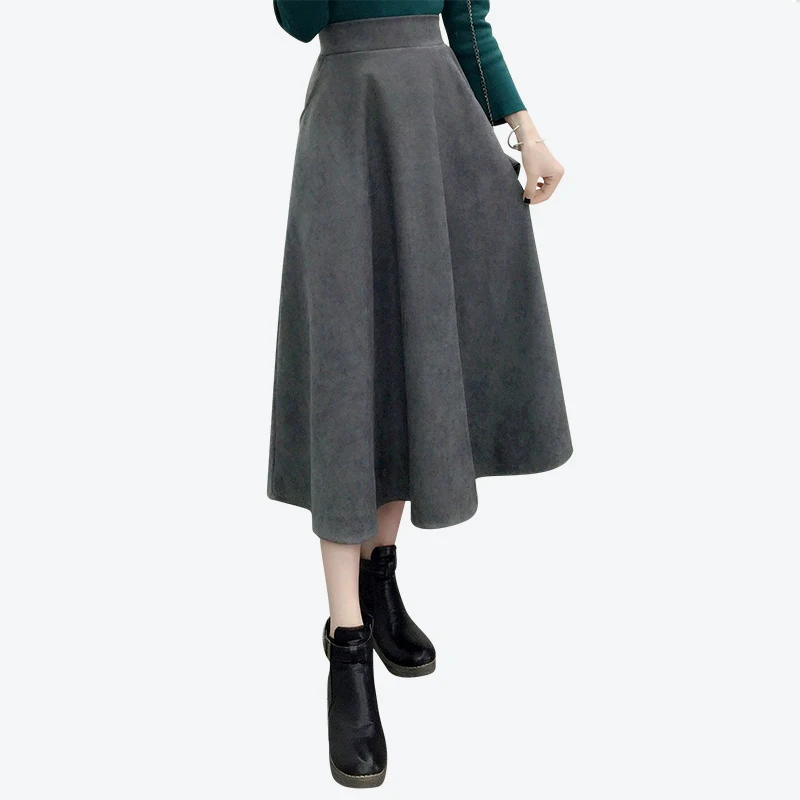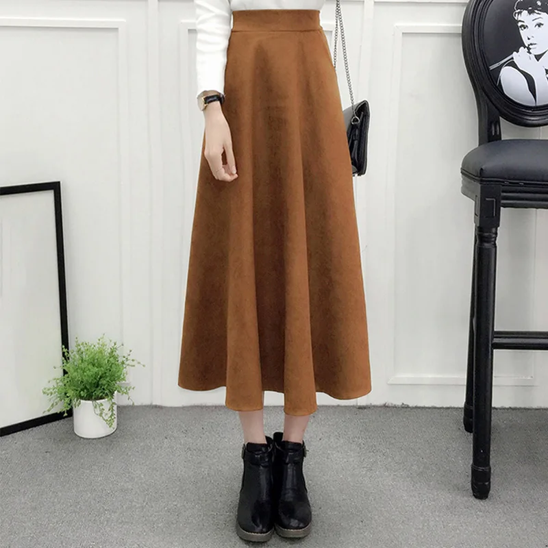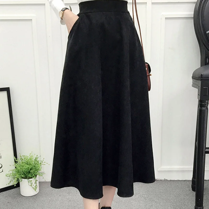 Beste Koop Fluwelen Hoge Taille vrouwen Midi Plooirok A lijn Office Lady Koreaanse Vrouwelijke Rokken 2018 Herfst Winter Skater Vrouwelijke Kleding Goedkoop.
