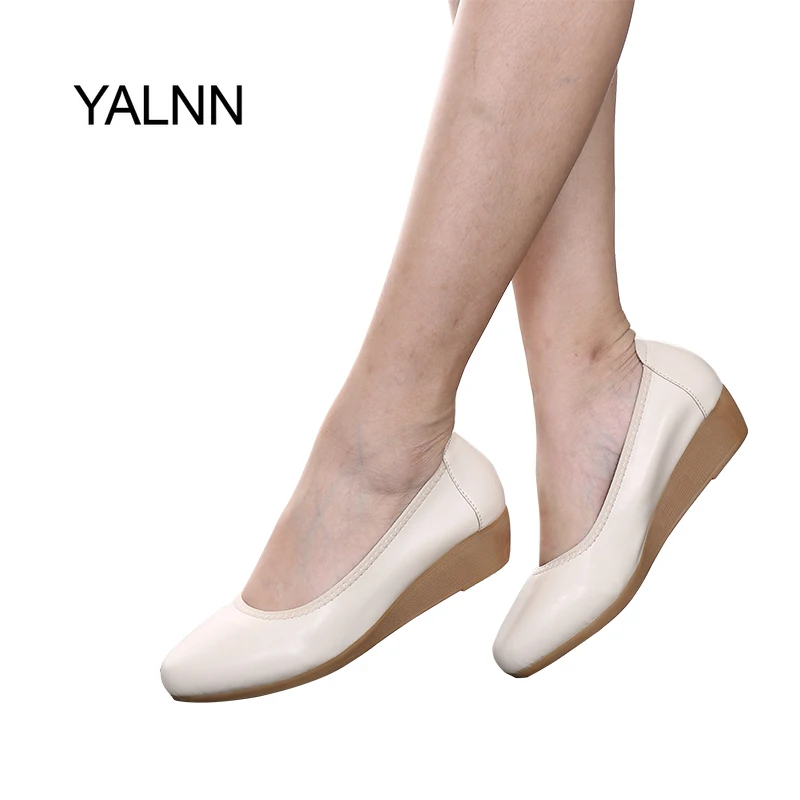 Beste Kopen YALNN Vrouwen Flats Schoenen Lederen 1.5 cm 3 cm 5 cm Hakken Vrouwen Flats Plateauzolen Puntschoen Flats Lederen Meisje Schoenen Goedkoop