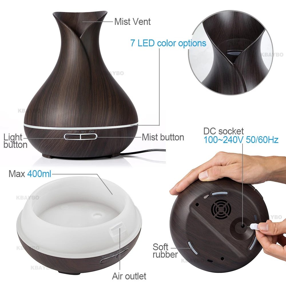 Kopen Goedkoop Elektrische Aroma Essenti euml;le Olie Diffuser Ultrasone Luchtbevochtiger met Houtnerf 7 Kleur Veranderende LED Verlichting voor Home office Online.