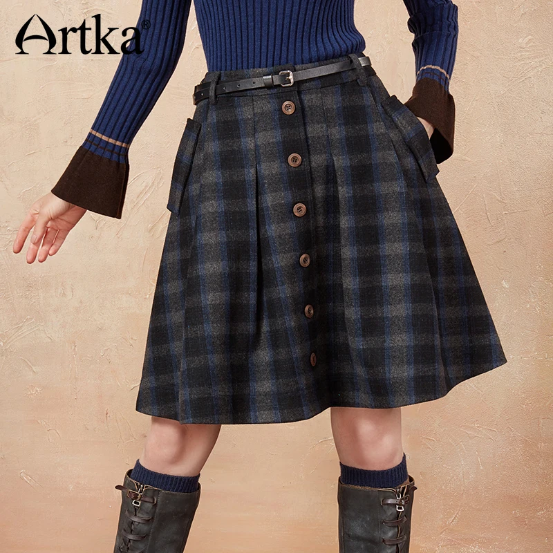 Goede Kopen ARTKA 2018 Winter Nieuwe Vrouwelijke A lijn Schuine Zakken Plaid Klassieke All Match Mini Rok QA10175D Goedkoop.