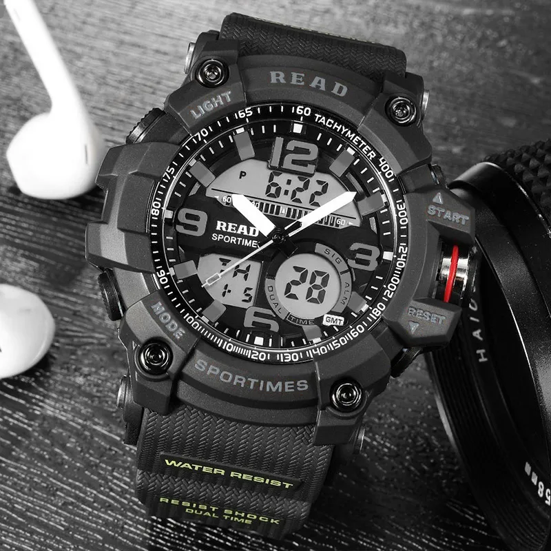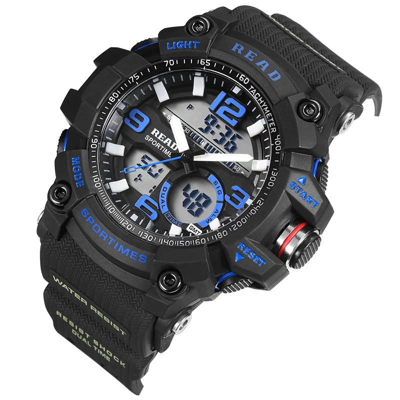 Beste Koop LEZEN Top nieuwe 90001 Mannen Sport Militaire Quartz Horloges Ronde 55mm Wijzerplaat Grote Digitale Schaal Analoge Pols StopWatch Relogio militan Goedkoop