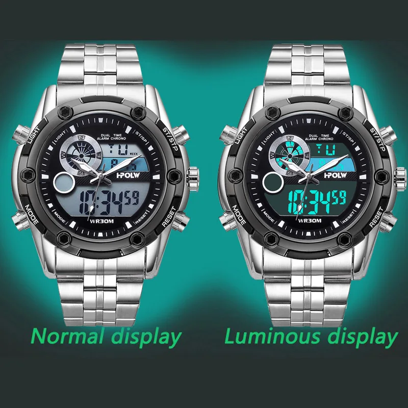 Goede Koop Mannen Sport Horloges Rvs Dual Display Horloge Digitale Analoge Militaire Leger Horloge Elektronische Quartz Horloge 30 m Waterdicht Goedkoop.