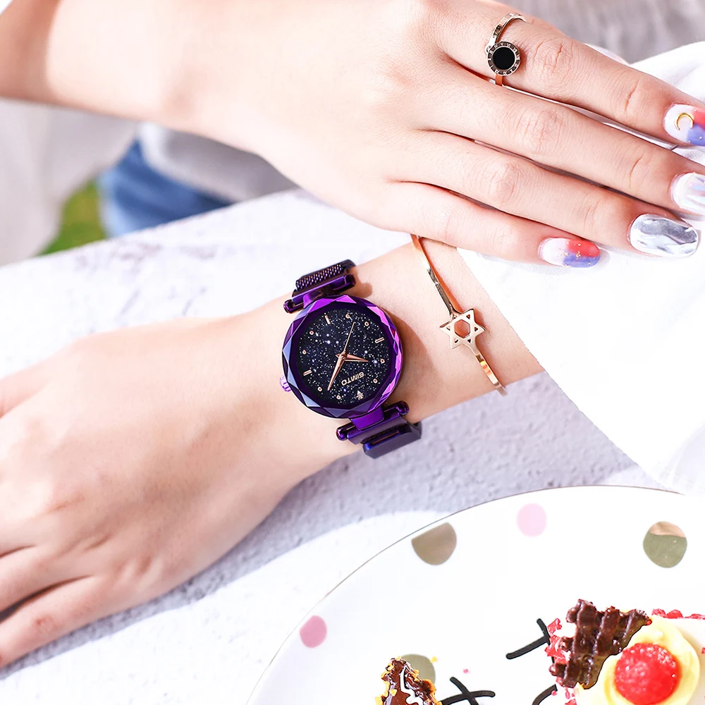 Goede Kopen Mode Armband Ster Sky Vrouwen Horloges Crystal Luxe Staal Rose Goud Quartz Dame Horloge Casual Vrouwelijke Klok Relogio Montre Goedkoop