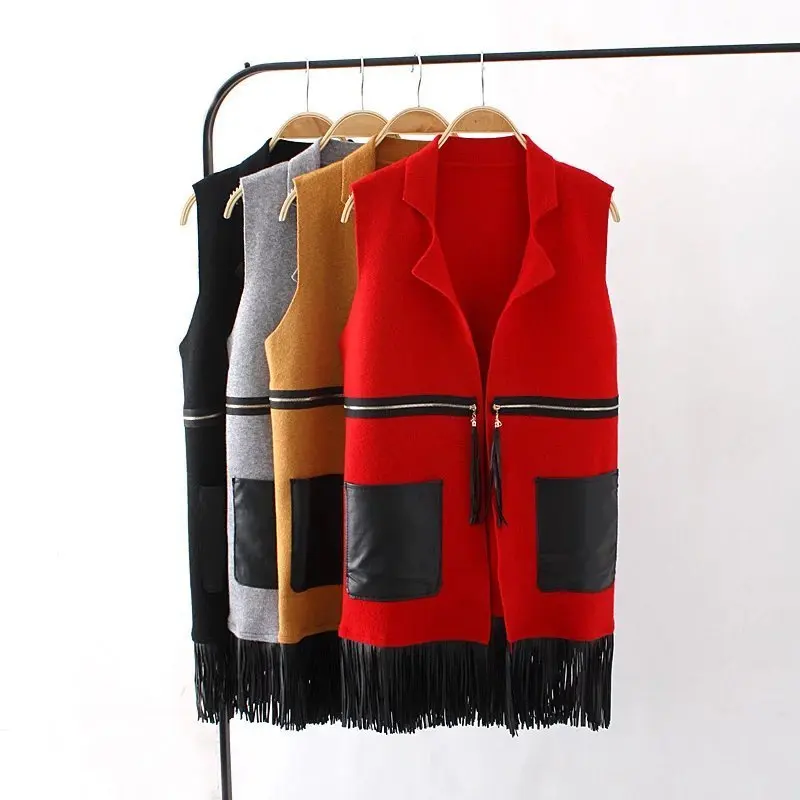 Beste Kopen Vrouwen Lente Herfst Lederen Zakken Wol Vest Dame Kantoor Slijtage Lange Vest Vrouwen Jas Casual Mouwloze Vest Jas Goedkoop.
