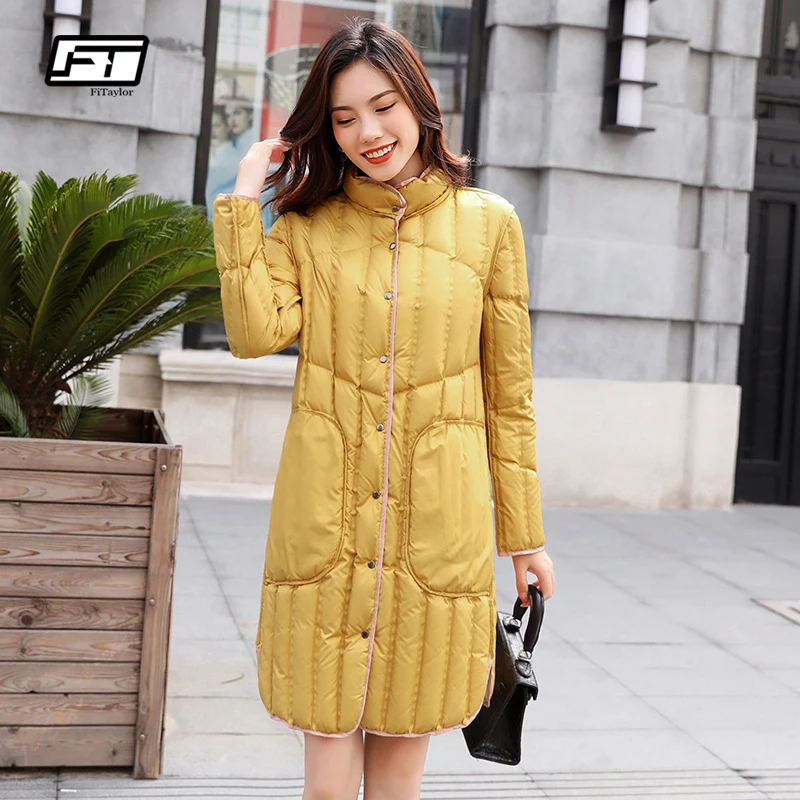 Kopen Goedkoop Fitaylor Winter Vrouwen Eend Donsjack Ultra Licht Dubbelzijdig Dames Parka Warm Sneeuw Uitloper Medium Lange Ongedwongen Jas Online.