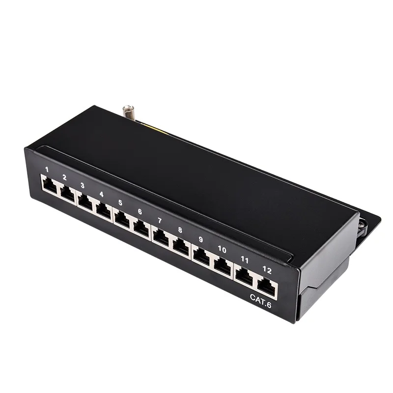 Goede Koop Mini Desktop KAT 6 12 port Patch Panel Volledige Afgeschermde, beschikbaar Voor Wandmontage (bodemplaat met muur mount schroef gaten) Goedkoop