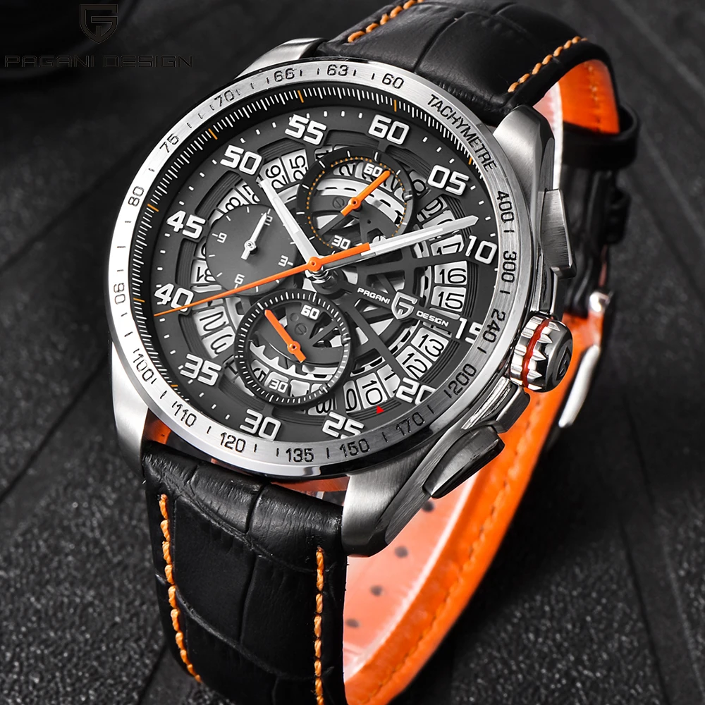 Kopen Goedkoop Pagani Avant Sport 3D Grote Wijzerplaat Quartz Mannen Kijken Topmerk Luxe Militry Leger Stijl Zwart Lederen Waterdichte Chronograaf Montre Online