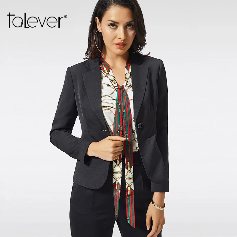 Kopen Goedkoop Talever Vrouwen Casual Slim Office Blazer Bovenkleding Zangeres Knop Zwarte Formele Blazer Jas Herfst Vrouwen Pak Dames Jas Online