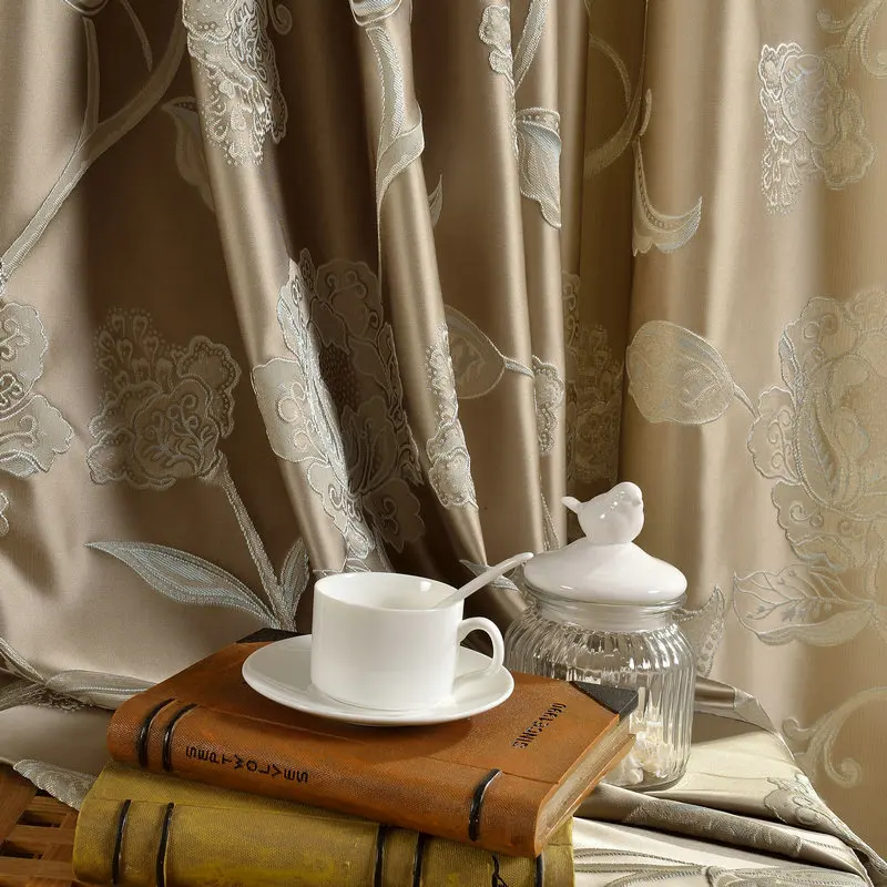 Kopen Goedkoop Jacquard Luxe Gordijnen Voor Slaapkamer Jaloezie euml;n Gordijnen Beige Geborduurde Bloem Gordijnen Voor Woonkamer Cream Hoge Shading Online.