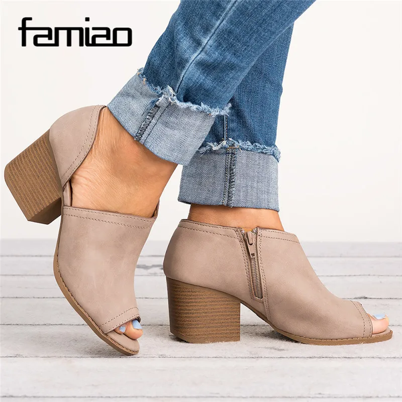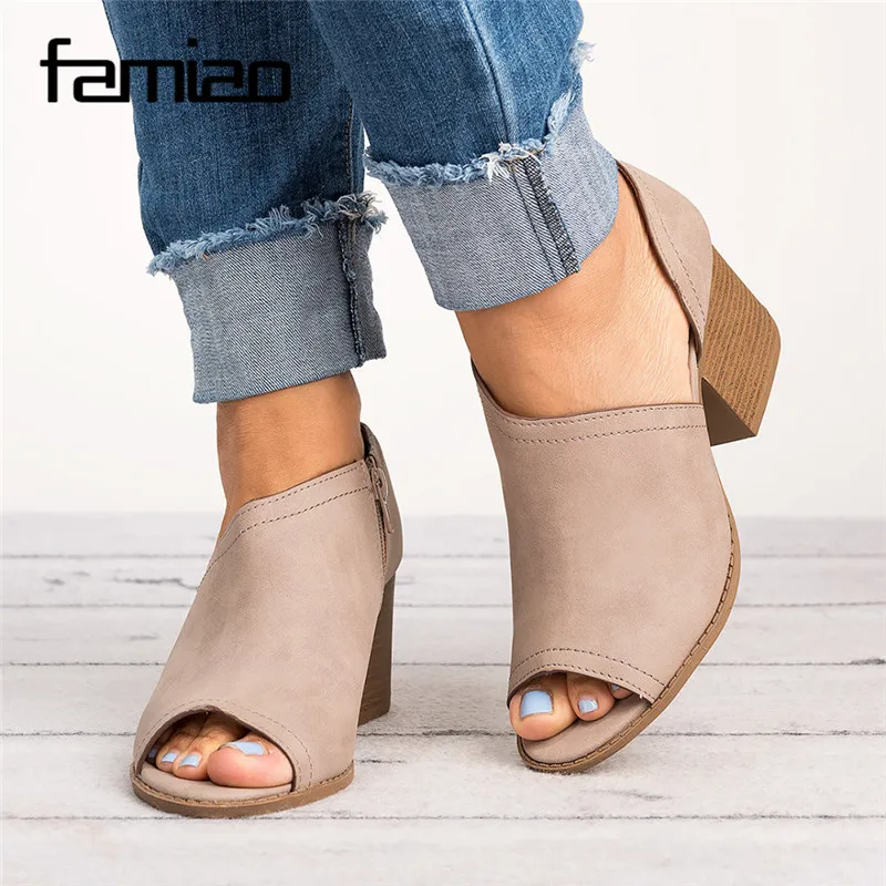 Goede Kopen FAMIAO Zomer Zapatos Mujer chunky hoge hakken kantoor dames Peep Toe pompen vrouwen schoenen vrouw partij PU lederen schoenen m810 Goedkoop